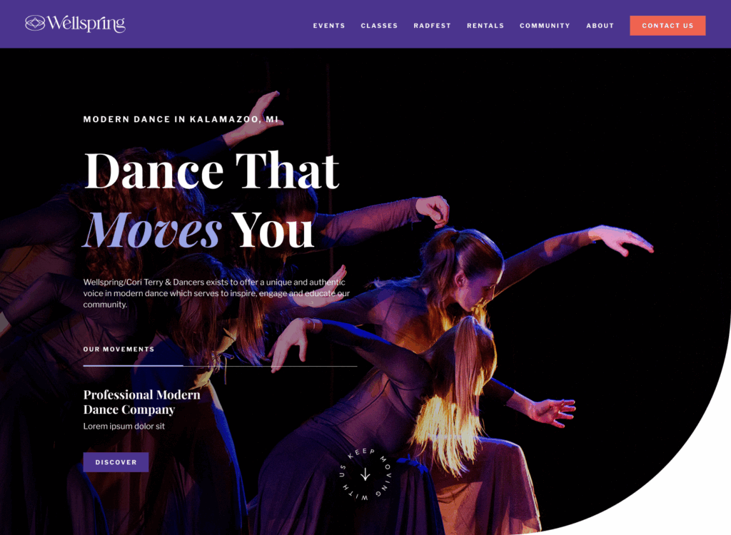 Wellspring is a cornerstone of the Kalamazoo, Michigan arts community, dedicated to offering exceptional dance training and promoting the art form. After investing in a comprehensive brand refresh, their existing website no longer reflects their new, modern identity.